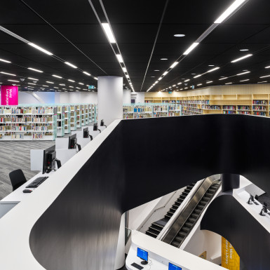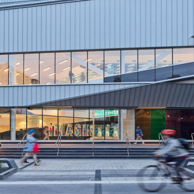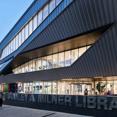 The Stanley A. Milner Library Renewal by Teeple Architects in association with Stantec reimagines the existing Edmonton Public Library (EPL) main branch as an innovative and welcoming civic hub. The renovation and expansion of the 1967 building actively supports the library’s position as a social and creative destination, embodying EPL’s values of openness and inclusion while reflecting its prominent downtown location on Sir Winston Churchill Square.